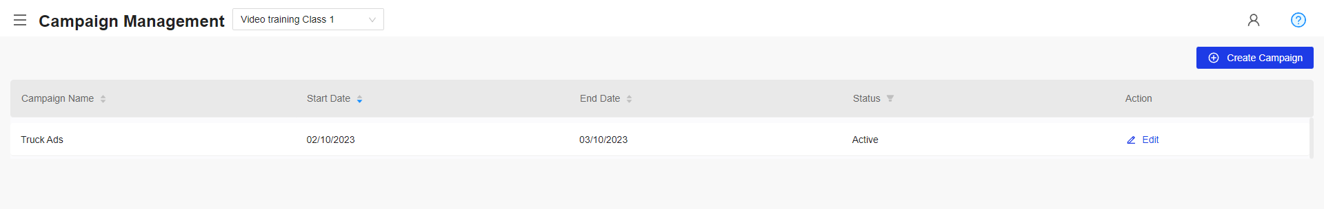 - To edit a campaign, click the Edit option.