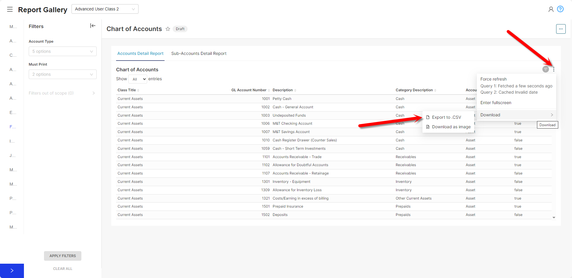 - Click on the icon in the upper left corner of the screen. Navigate to Reporting and then Report Gallery.